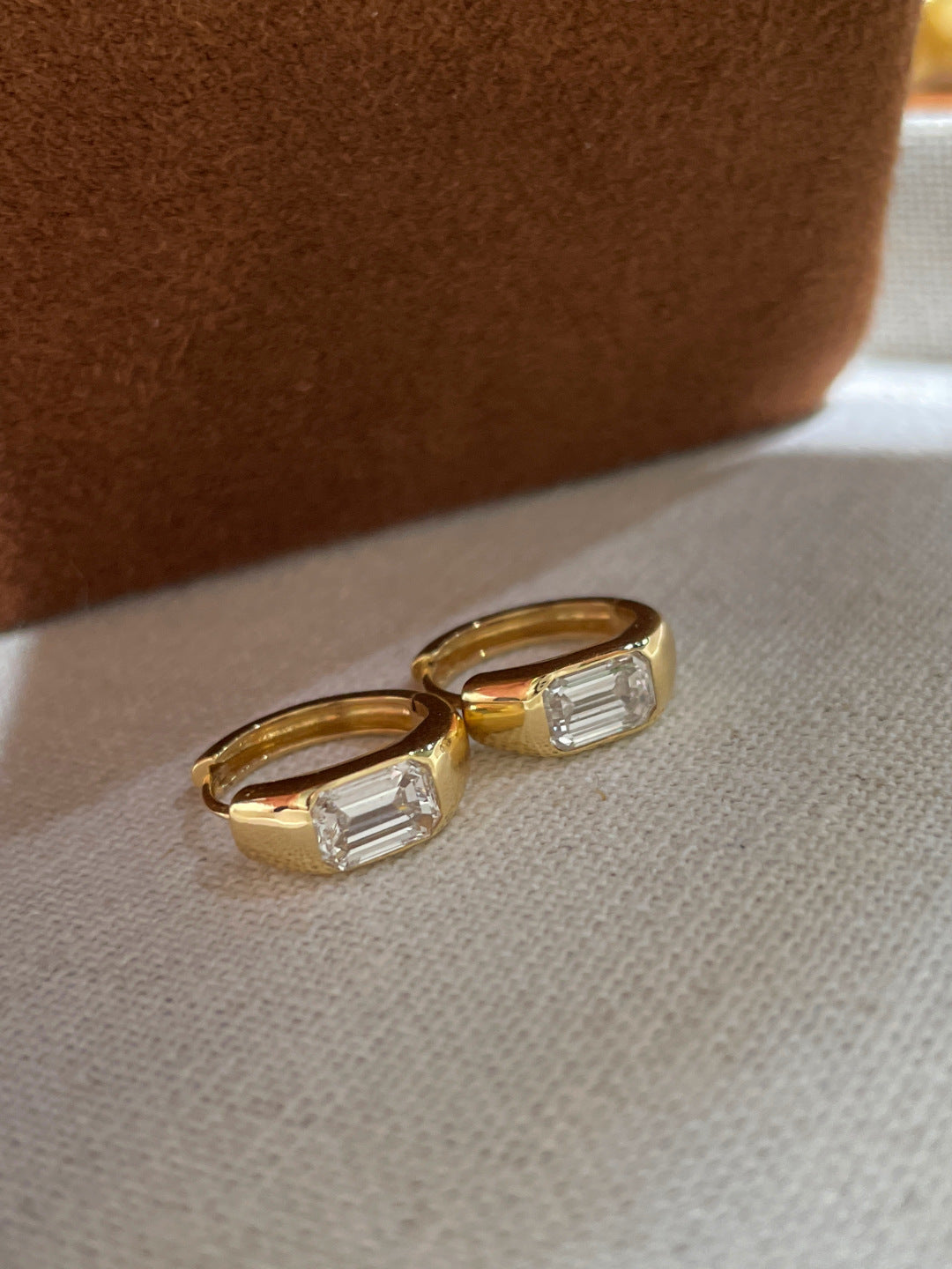 Emerald-Cut Lab-Grown Diamond Bezel-Set Huggie Hoops, 18K Gold