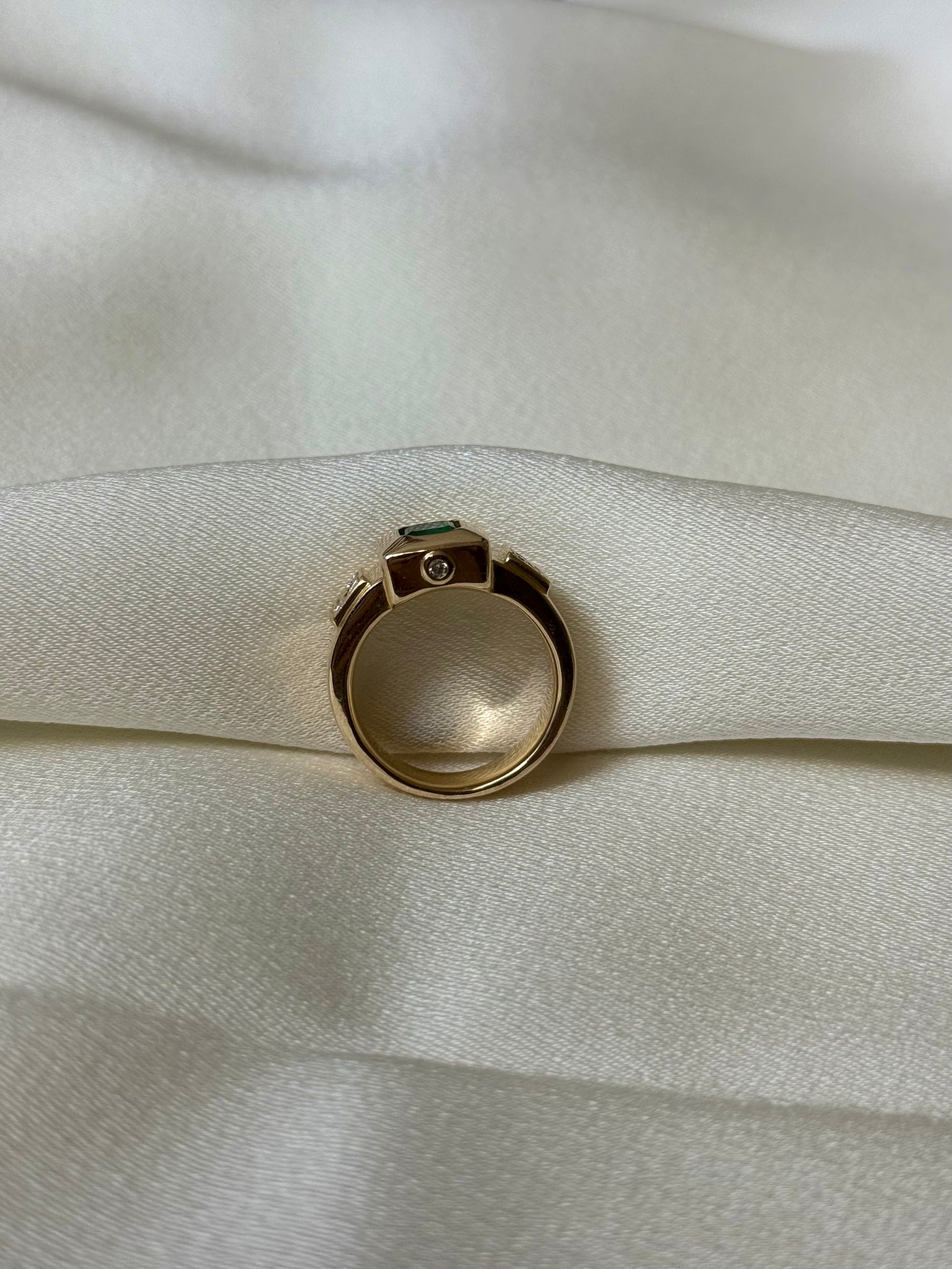 Vintage Ring in K18 Yellow Gold with Emerald & Natural Diamond